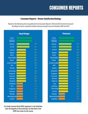 As of the most recent available Consumer Reports data (covering systems installed between 2005 and 2021), over 36,000 gas furnace owners were surveyed. Their owner satisfaction ratings are based on the percentage of members who are extremely likely to recommend their gas furnace brand to friends and family.