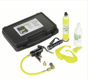 When I want to introduce the leak search, I tell my customer, let’s get you back cooling today so your family is comfortable. The we should go ahead and start the leak search process which includes us going to the different parts of the AC system with our electronic sniffer looking for the leak. The majority of the time I can find the leak with this method. That cost $X amount and is good for the first hour of searching for the leak. If we can’t find the leak after the first hour, we bump it up a level to $X amount. This level of leak search includes us adding a fluorescent dye to the system so we can let it circulate in the system for a couple of weeks (while you are still staying cool). Then we come back out and look for the dye. If there is indeed a hole somewhere in that copper or aluminum line, the oil and the dye inside the lines will spew out of the hole and splash onto anything around it like the aluminum fins on the coil or the condensate drain pan and into the P-trap. We’ll take the dye kit which comes with some yellow glasses and a UV flashlight. When we shine the light onto the dye which has come out of the leak and we have our yellow glasses on we can plainly see the leak is coming from there. We shouldn’t stop looking though! Just because there is one leak doesn’t mean there aren’t two or more holes.